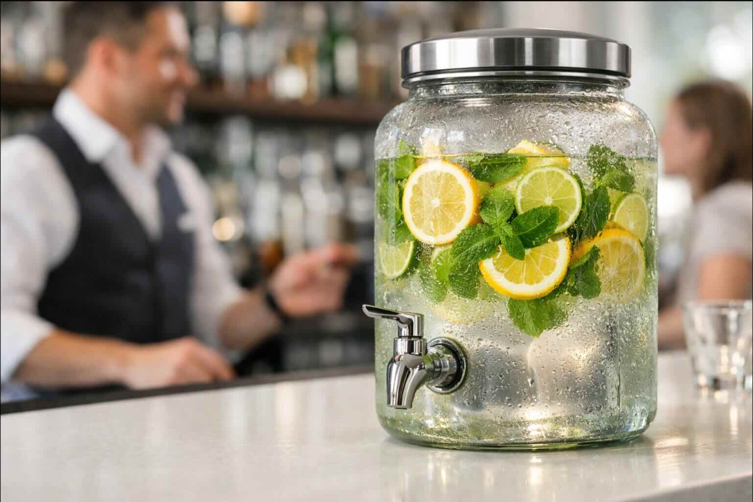 Los dispensadores comerciales (de zumos, tés fríos o aguas saborizadas) son aliados indispensables para mejorar la rapidez y la higiene [2].