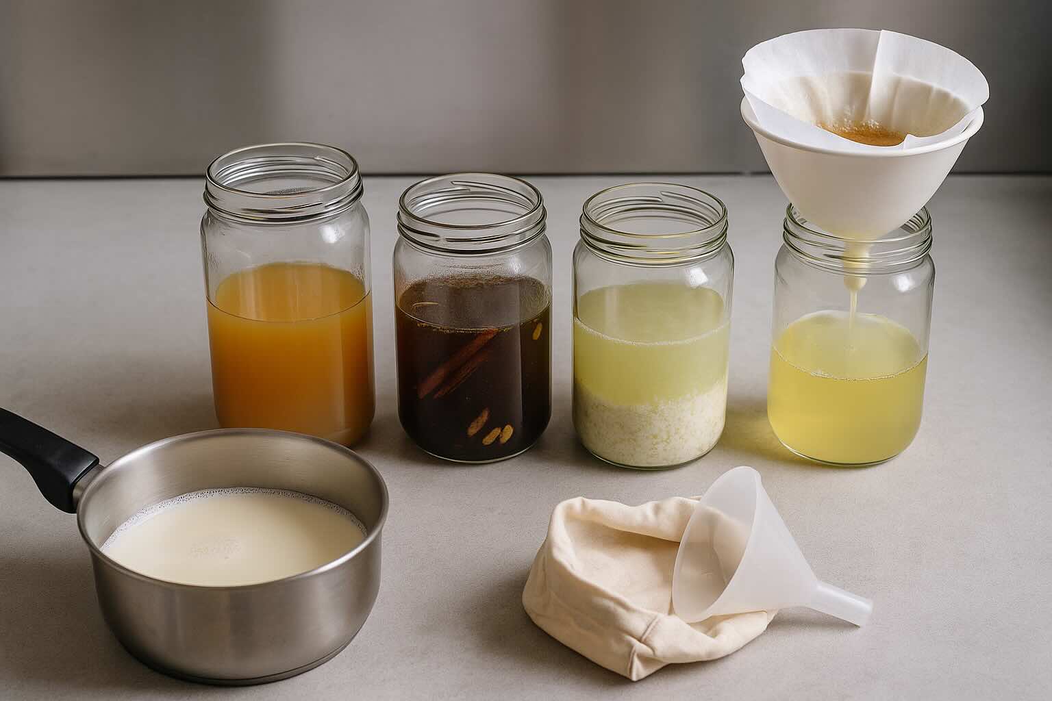 - Regla de mezcla: añade el punch ácido caliente sobre la leche caliente, nunca al revés (curdles grandes = filtrado rápido).